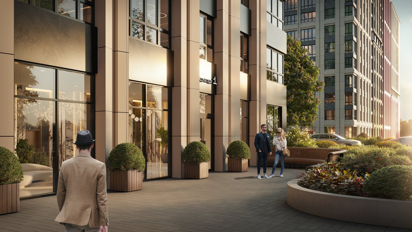 Первая очередь домов получила название «Энтузиазм». Это два первых литера 45/1 и 45/2, и двор с открытой фитнес-зоной для тренировок, интерактивными инсталляциями, игровым пространством 0+ для детей, уличными тренажерами, зонами для отдыха. Продуманы пространства для жителей всех возрастов и физических возможностей.