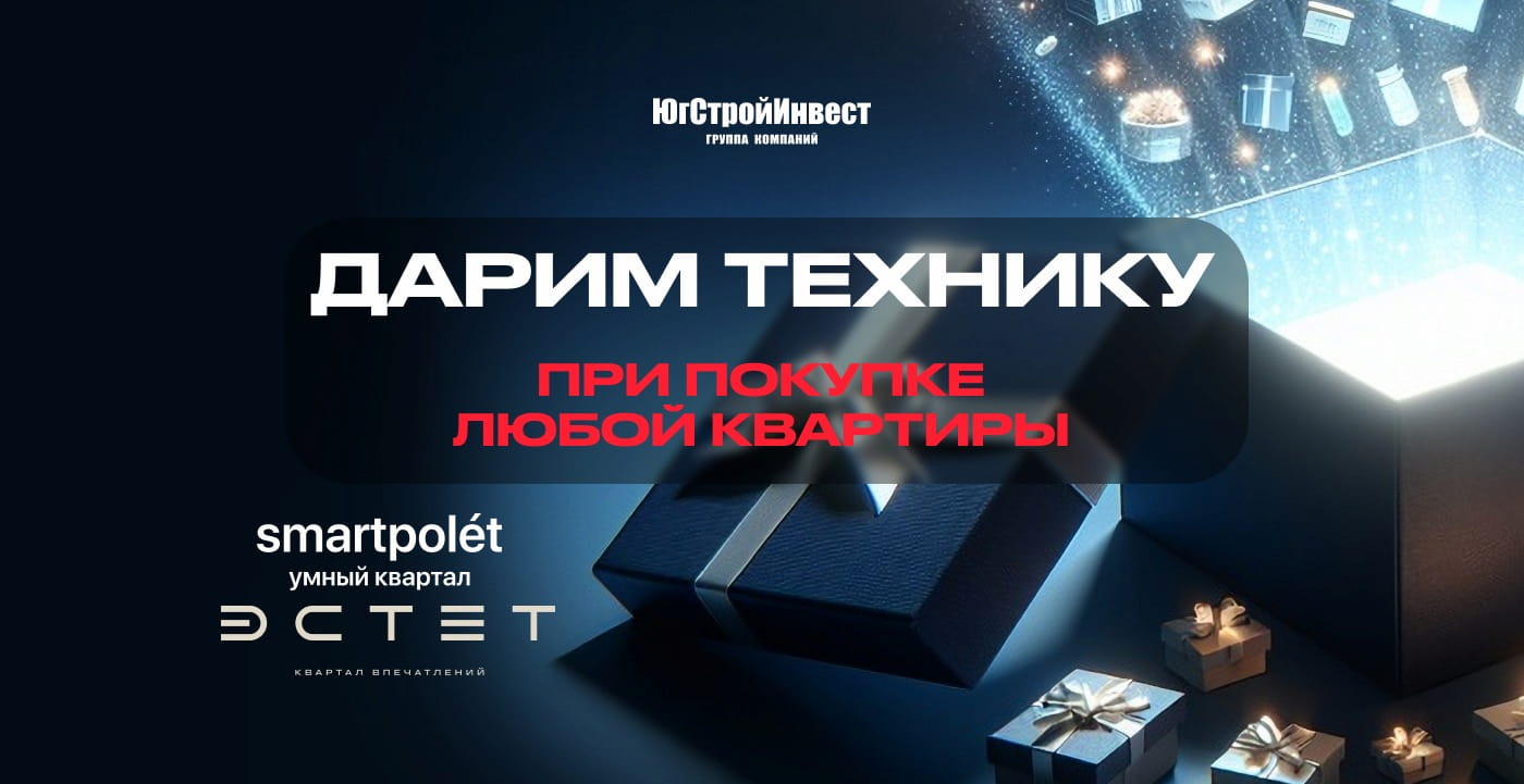 При покупке квартиры в кварталах «Эстет» и smartpolét вы получаете бытовую технику в подарок. Проекторы, мультиварки, очистители воздуха, отпариватели — призы ограничены.