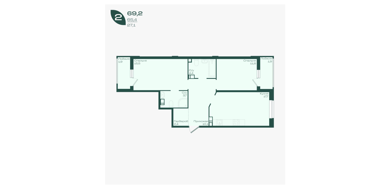 69,2 м²