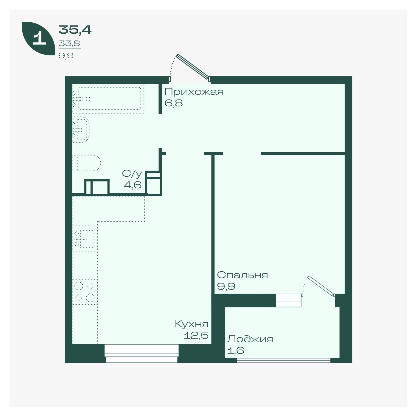 35,4 м²