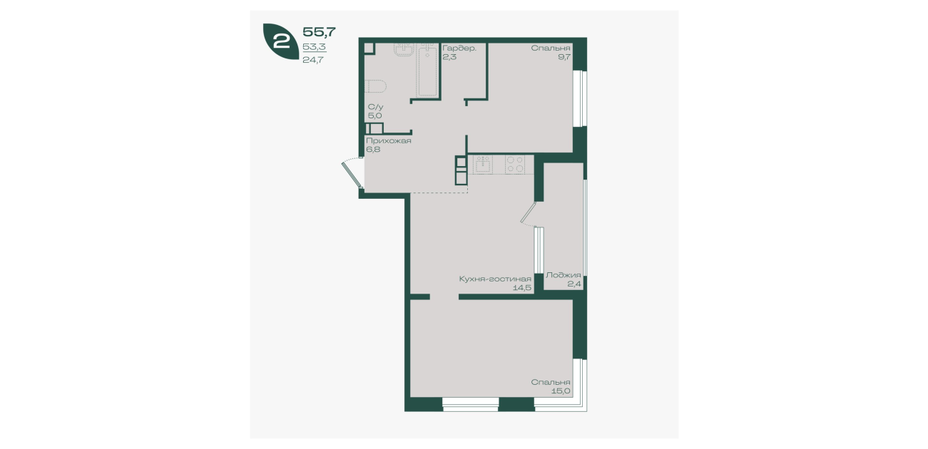 55,7 м²