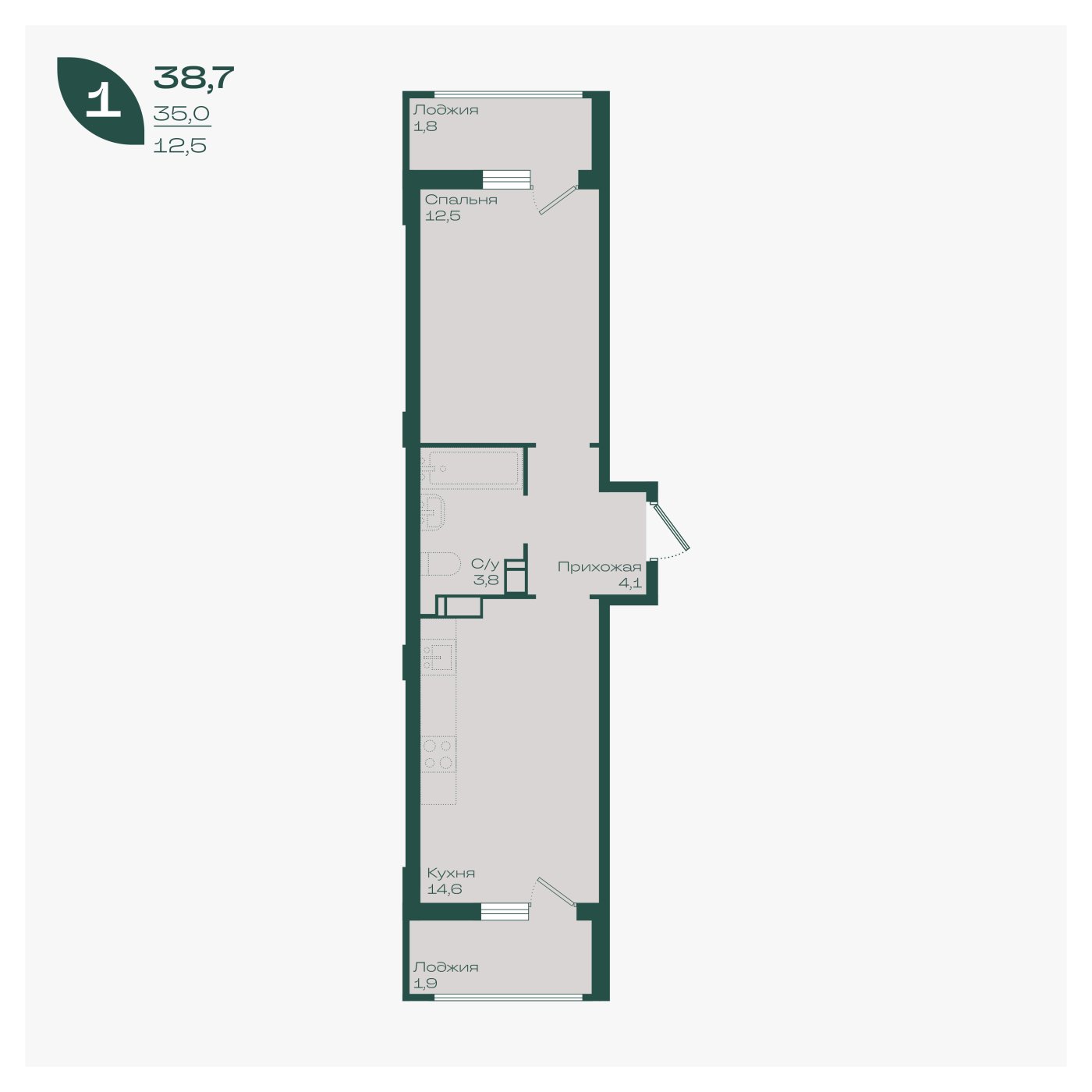 38,7 м²