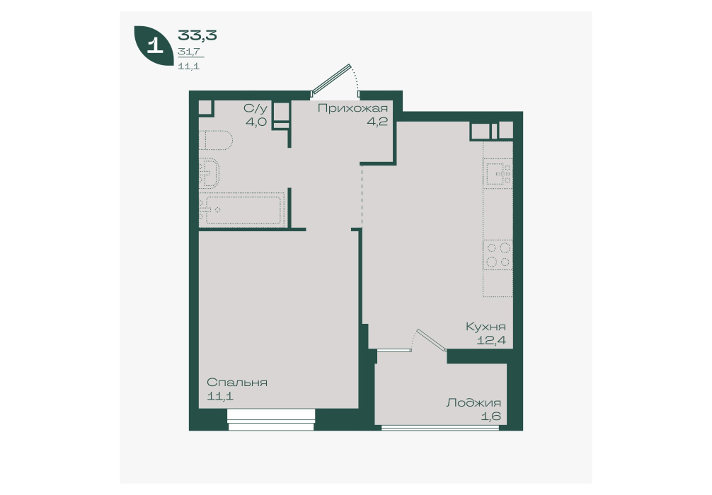 33,7 м²