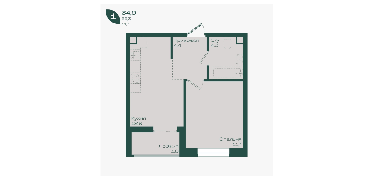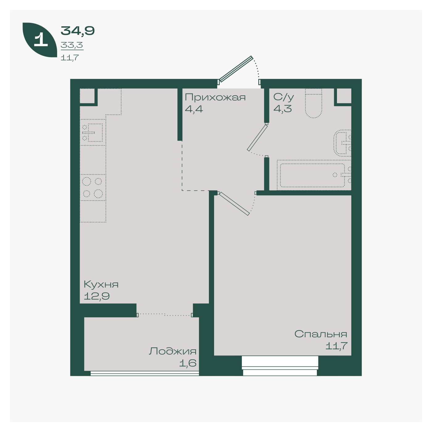 34,5 м²