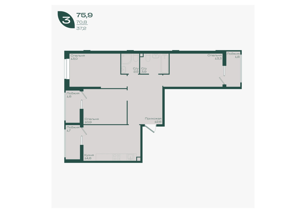 75,4 м²