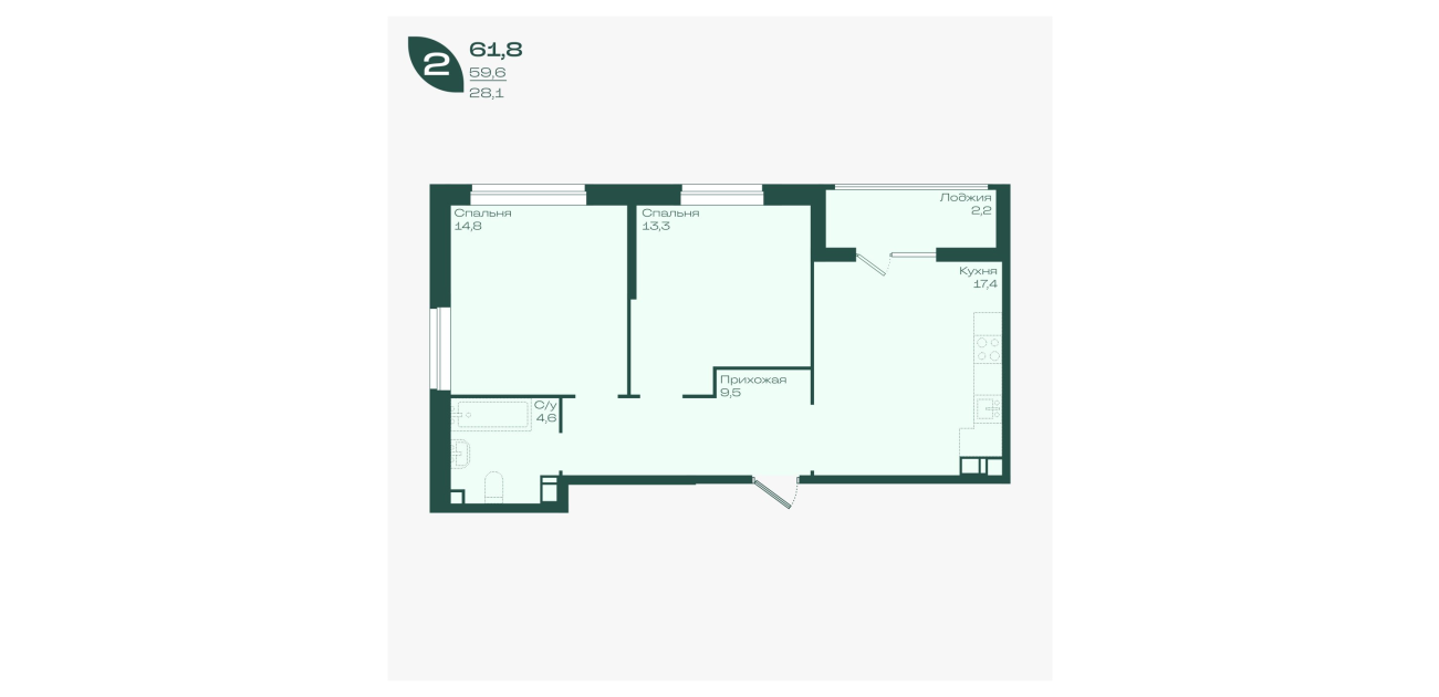 61,8 м²
