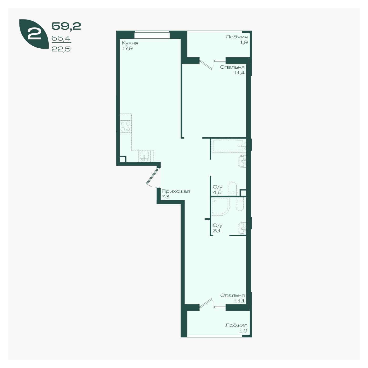 59,2 м²