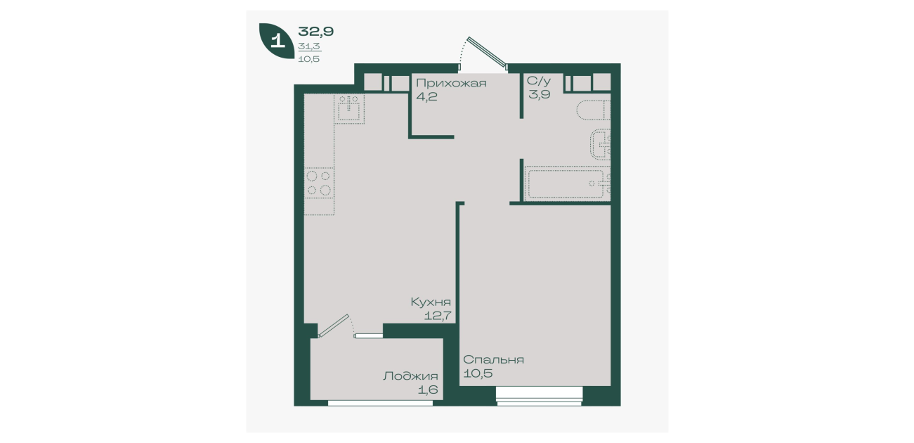 32,9 м²