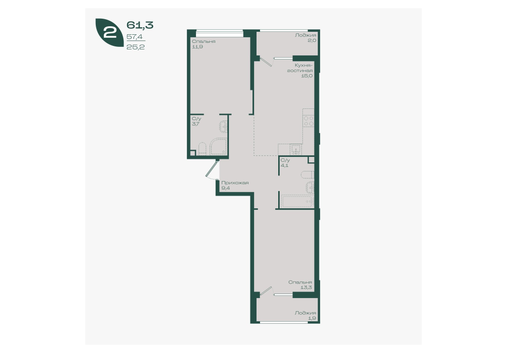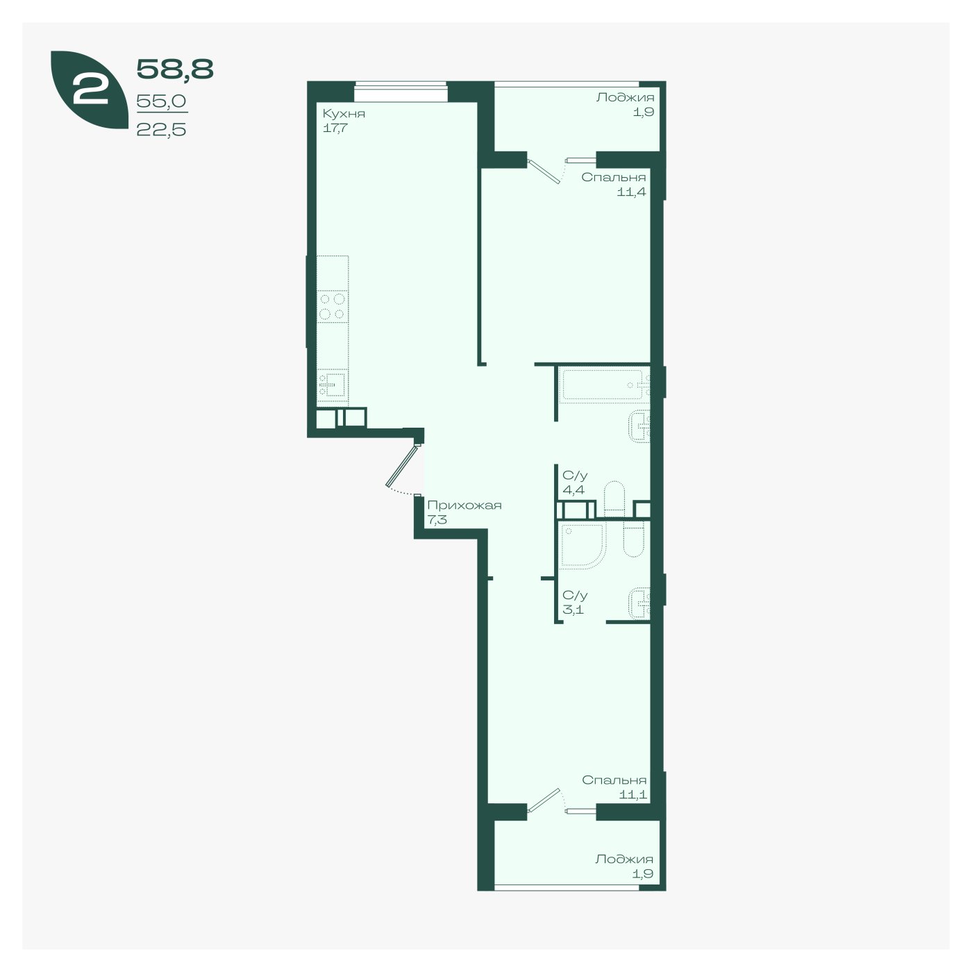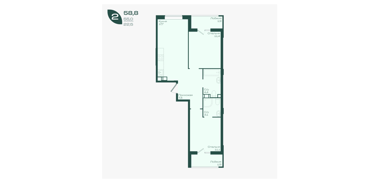 58,8 м²