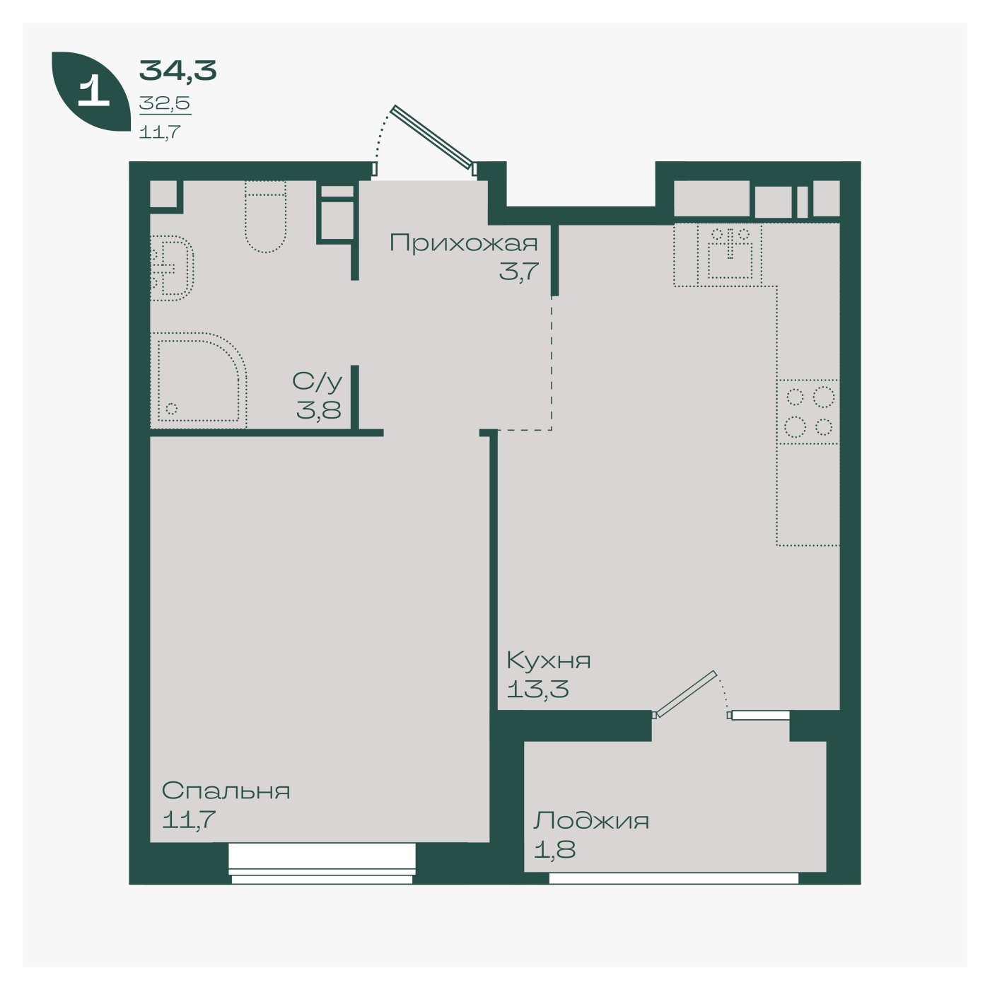 34,3 м²