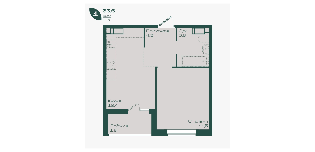 33,6 м²