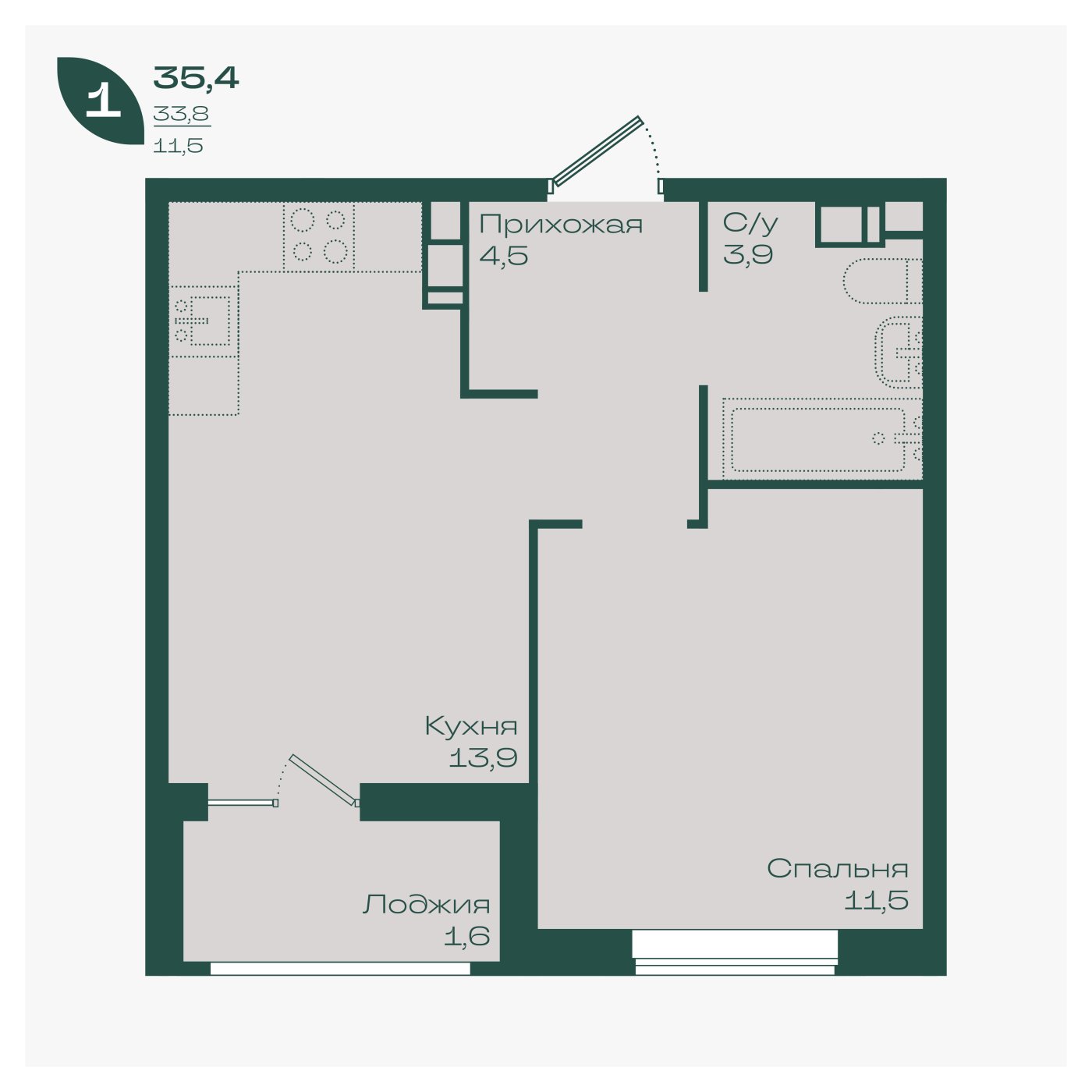 35,4 м²