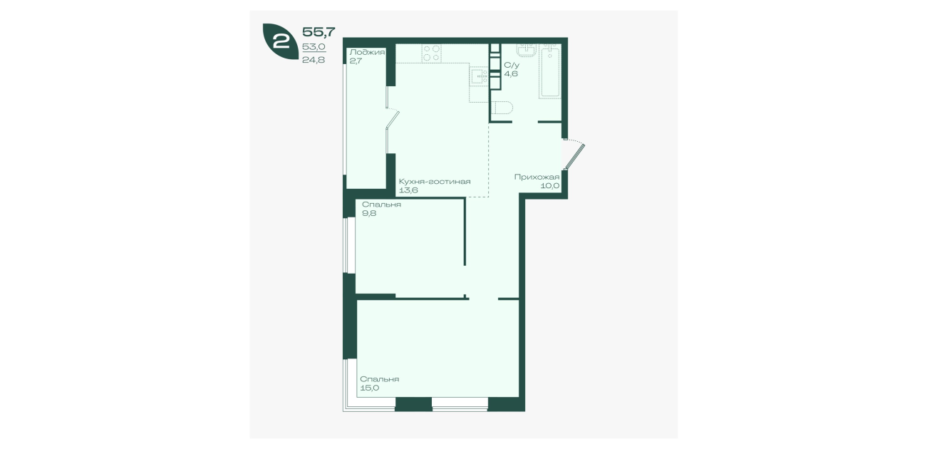 55,7 м²
