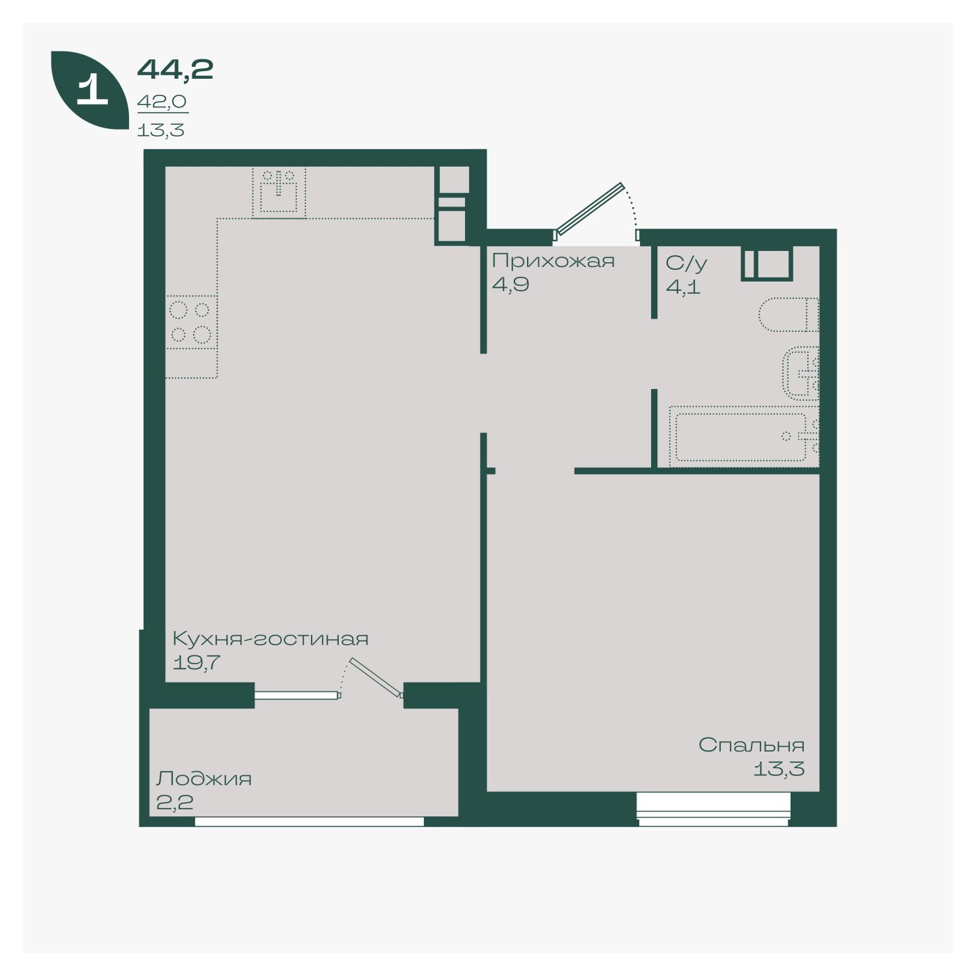 44,2 м²